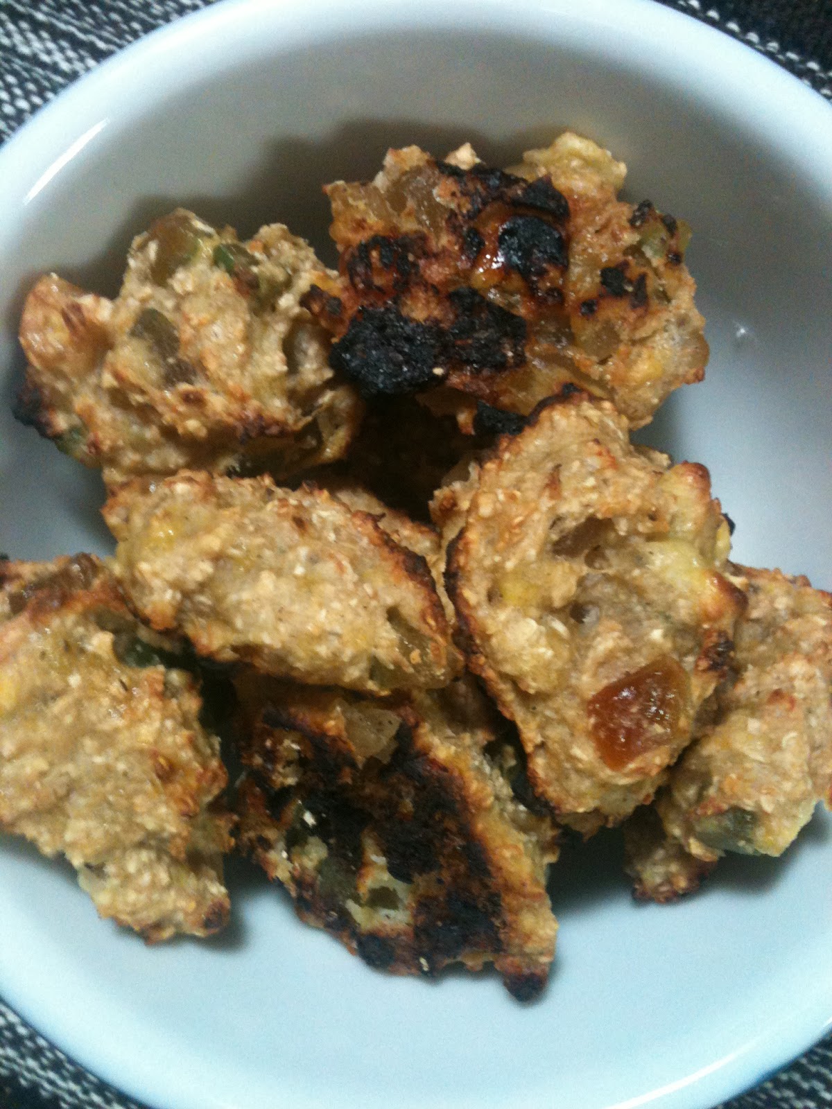 Esses são os ingredientes! Mistura tudo, (amassa bem) aí acrescente o sabor que você quiser, eu coloquei um pouquinho de mel e frutas cristalizadas. Mas você também pode ir longe, canela, uva passa, amendoim picado…. Finalizando, asse 20 minutos no forno. O meu forno já estava quente por causa dos muffins e acabei dando uma queimadinha! (fique de olho)