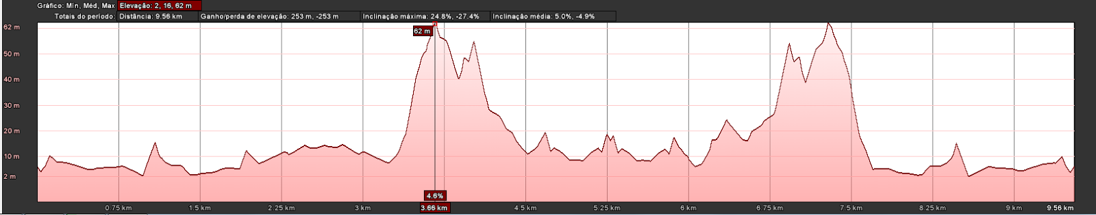 | Altimetria da volta de ciclismo (2 voltas de 10km) |
